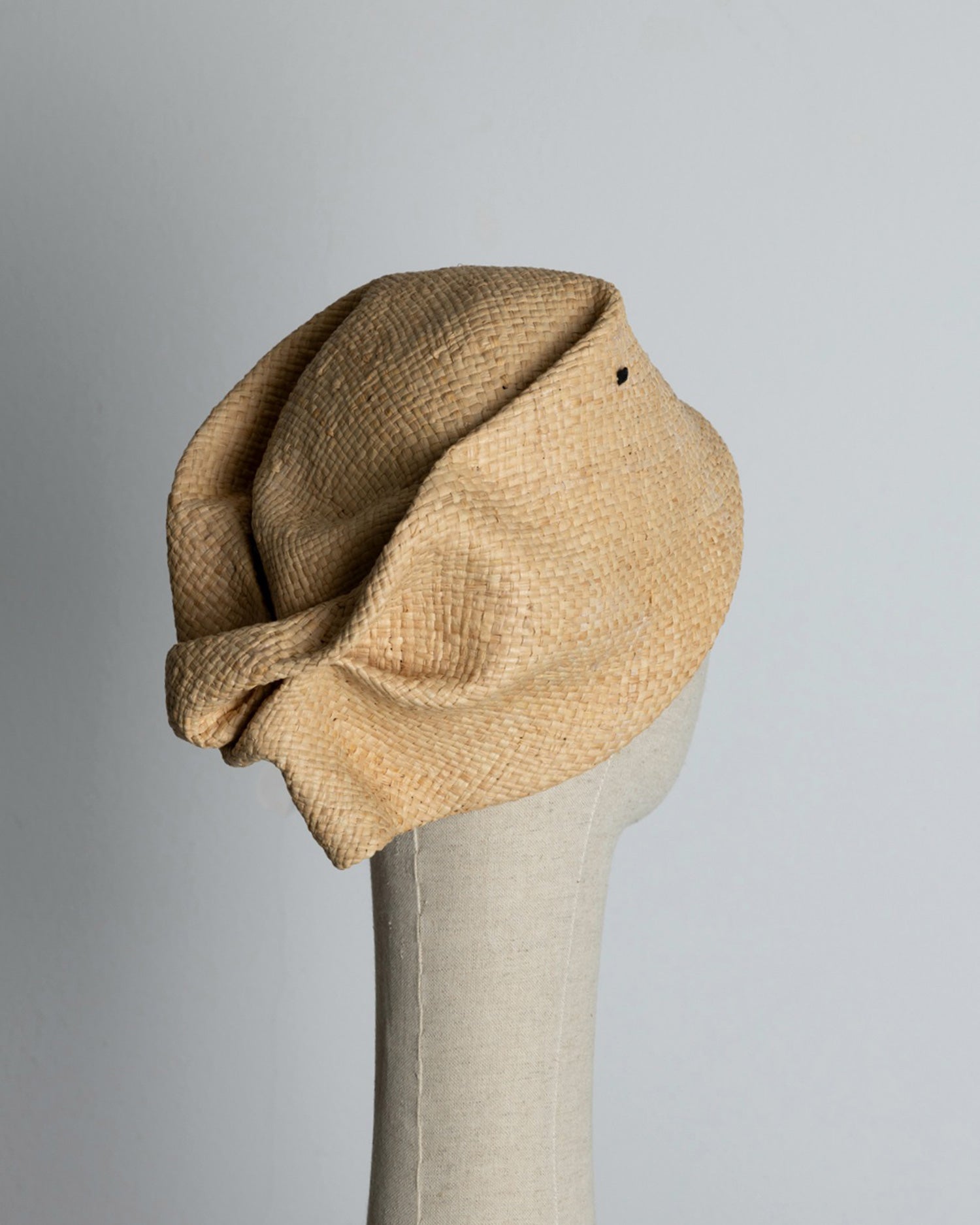 Qualche anno dopo ho iniziato a studiare l’arte della modisteria e a creare i miei primi cappelli ricercando materiali di qualità sia per il feltro che per la paglia. Non uso forme predefinite, mi piace assecondare il materiale e vedere cosa ne esce. A volte sono cappelli dalle linee dolci e sinuose altre, combinazioni di forme astratte dal carattere leggero.
