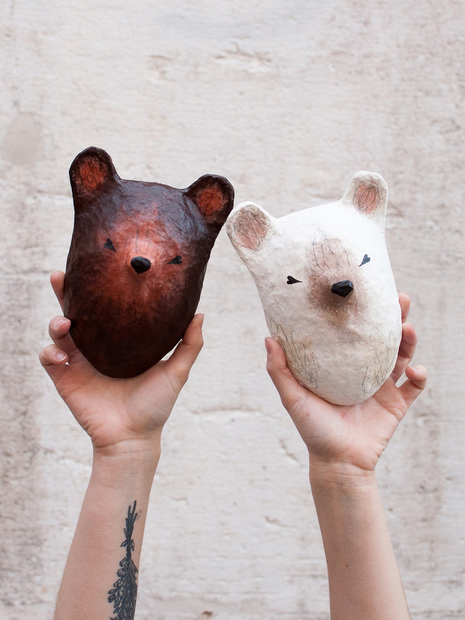 Qui la cartapesta tradizionale veneziana diventa altro, trasformando le mie illustrazioni in oggetti tridimensionali: orsi, volpi e civette prendono forma a uno a uno, modellati e dipinti a mano, trasformando la carta di recupero in sculture poetiche immerse in un immaginario fiabesco.