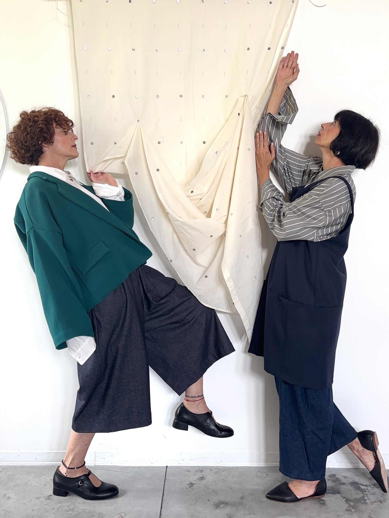 Sono Cristina e creo capi d’abbigliamento con i corredi di famiglia. Nel mio lavoro intreccio artigianato, filosofia e impegno sociale esplorando temi di identità, cura e resistenza.
